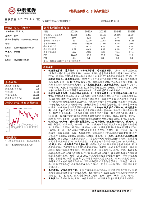 【中泰证券】【20230808】春秋航空(601021)时刻与航网优化,引领高质量成长-32页