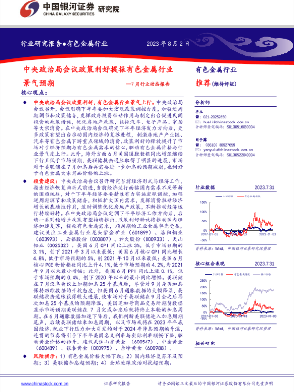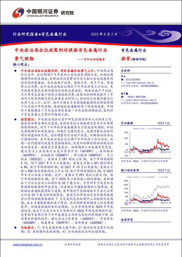 【银河证券】【20230802】有色金属行业7月行业动态报告:中央政治局会议政策利好提振有色金属行业景气预期-25页