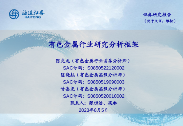 【海通证券】【20230805】有色金属行业研究分析框架-25页