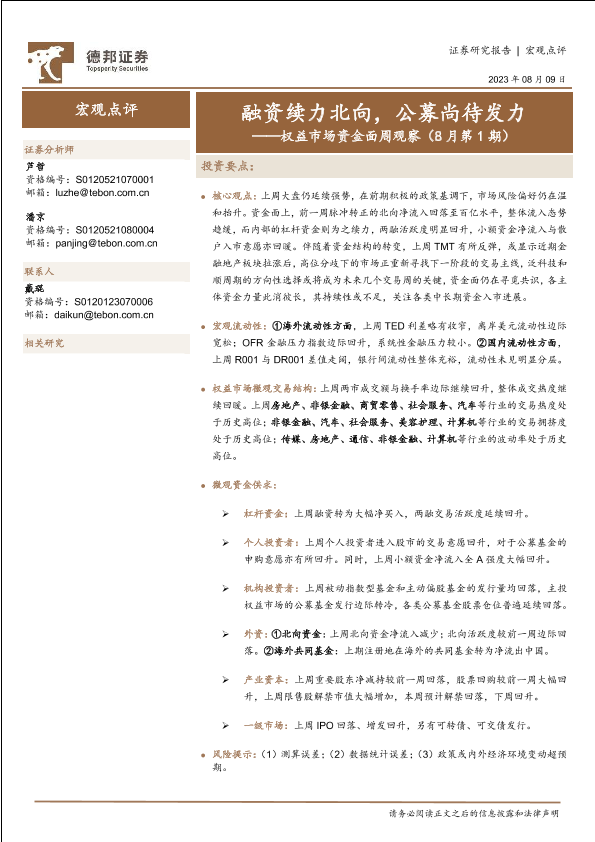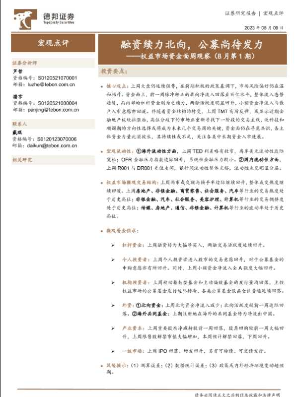 【德邦证券】【20230809】权益市场资金面周观察(8月第1期):融资续力北向,公募尚待发力-22页