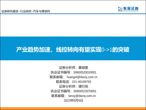 【东吴证券】【20230806】汽车与零部件行业:产业趋势加速,线控转向有望实现0->1的突破-74页