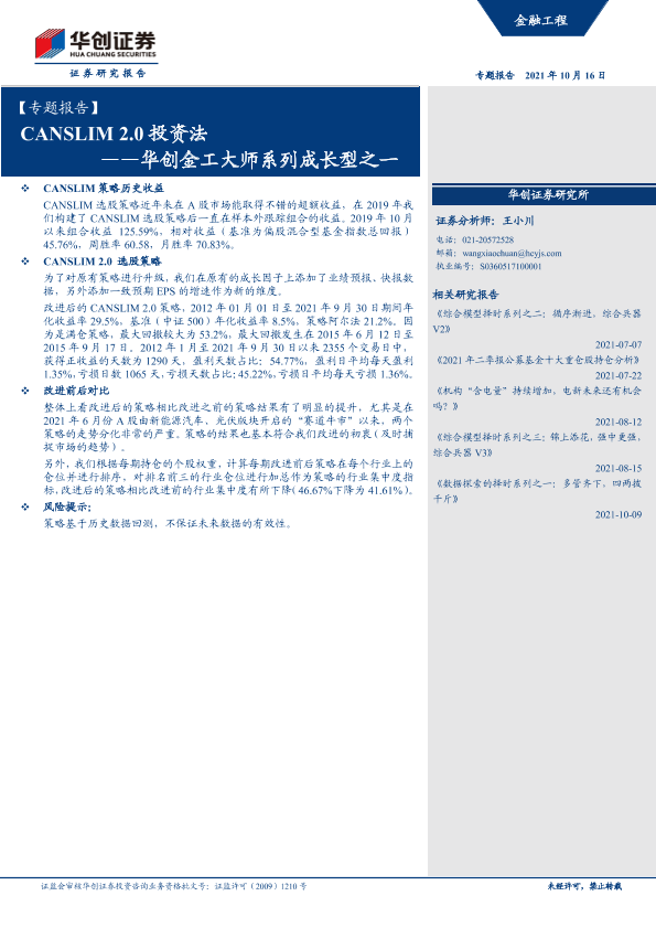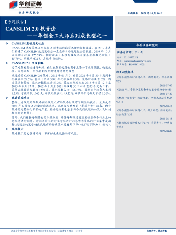 【华创证券】【20211016】华创金工大师系列成长型之一:CANSLIM 2.0投资法-31页