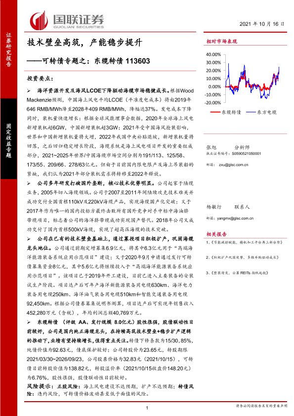 【国联证券】【20211016】可转债专题之:东缆转债113603,技术壁垒高筑,产能稳步提升-15页
