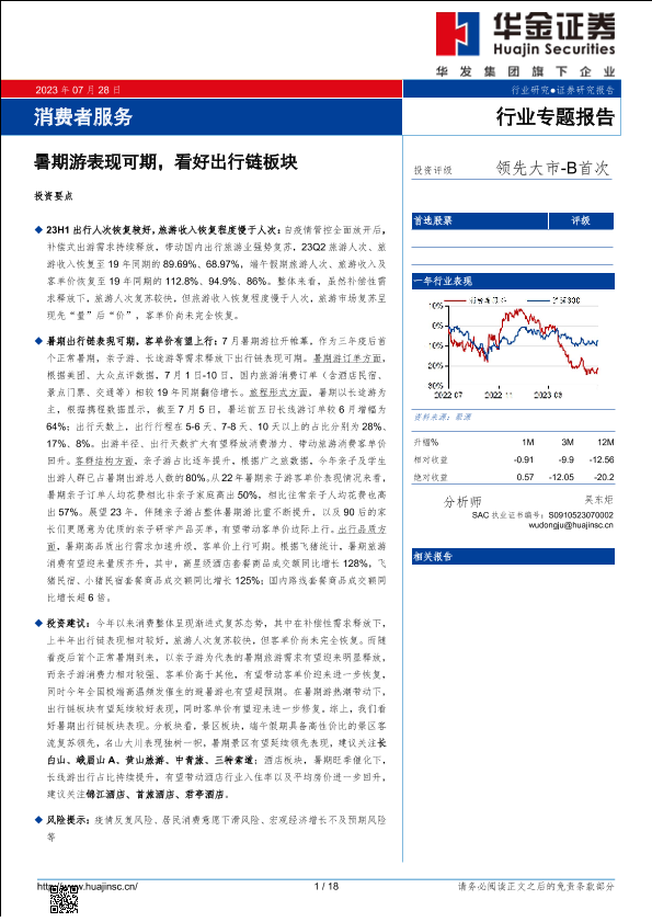 【华金证券】【20230728】消费者服务行业专题报告:暑期游表现可期,看好出行链板块-18页