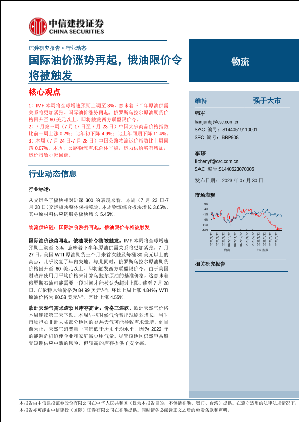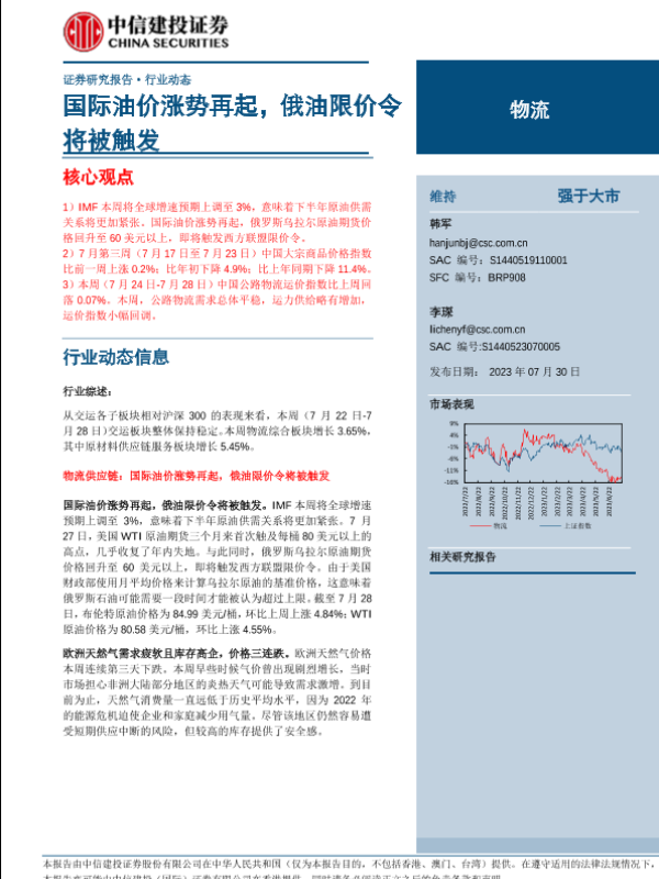 【中信建投证券】【20230730】物流行业:国际油价涨势再起,俄油限价令将被触发-16页