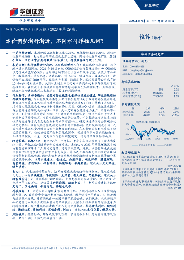 【华创证券】【20230807】环保及公用事业行业周报(2023年第29期):水价调整渐行渐近,不同水司弹性几何?-16页
