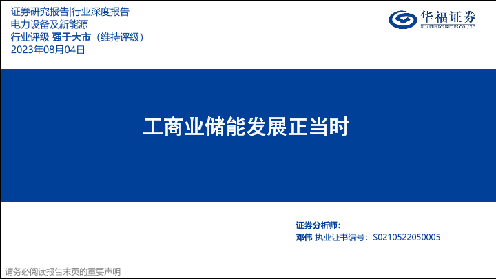【华福证券】【20230804】电力设备及新能源行业深度报告:工商业储能发展正当时-38页