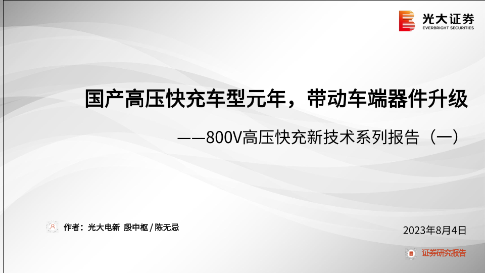 【光大证券】【20230804】电力设备新能源行业800V高压快充新技术系列报告(一):国产高压快充车型元年,带动车端器件升级-22页