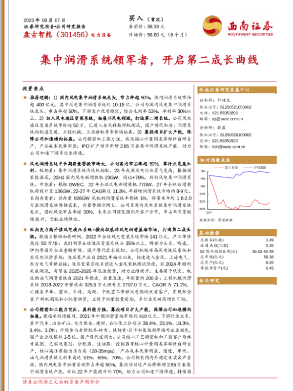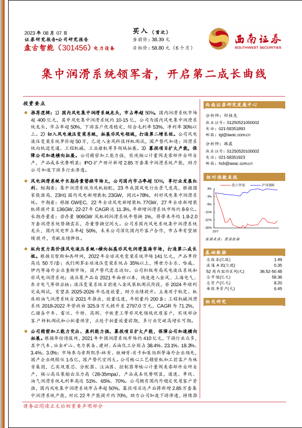 【西南证券】【20230807】盘古智能(301456)集中润滑系统领军者,开启第二成长曲线-38页