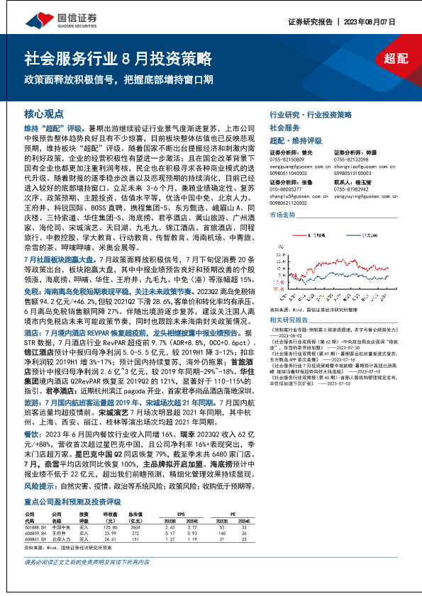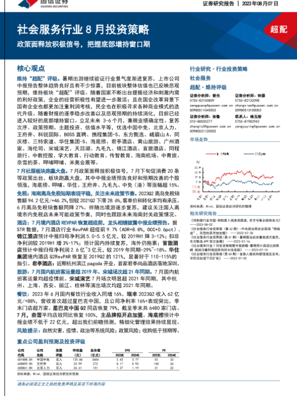 【国信证券】【20230807】社会服务行业8月投资策略:政策面释放积极信号,把握底部增持窗口期-21页