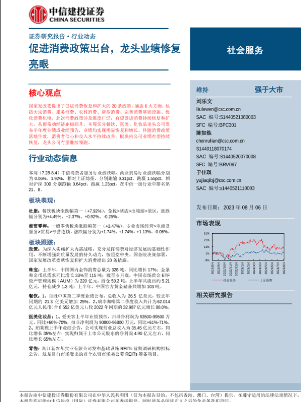 【中信建投证券】【20230806】社会服务行业:促进消费政策出台,龙头业绩修复亮眼-28页