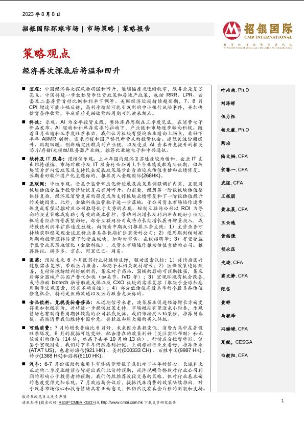 【招银国际】【20230808】策略观点:经济再次探底后将温和回升-32页