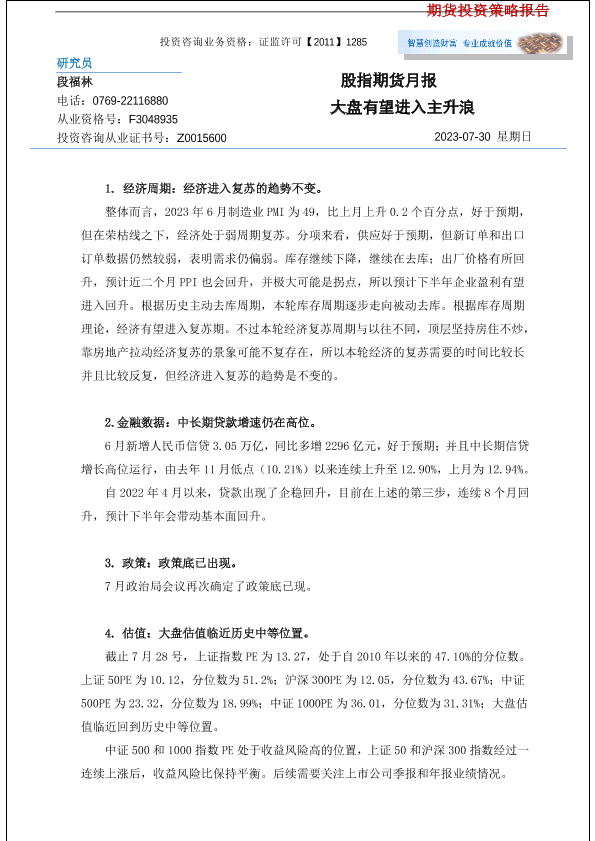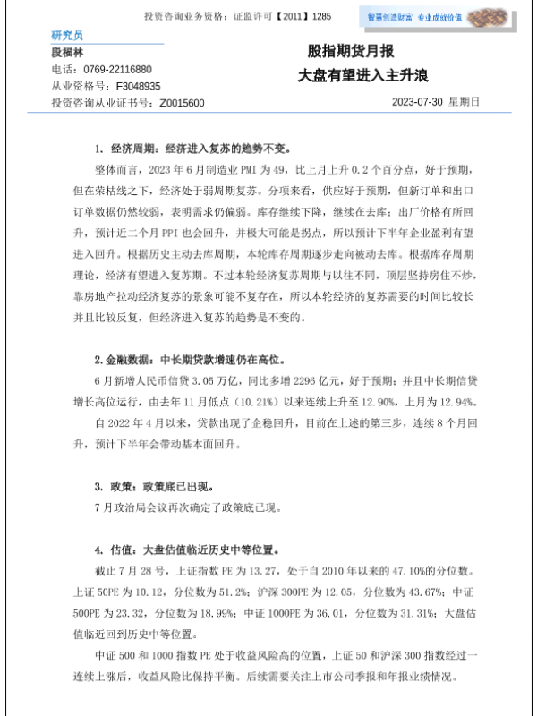 【华联期货】【20230730】股指期货月报:大盘有望进入主升浪-15页