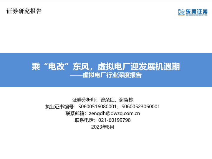 【东吴证券】【20230810】虚拟电厂行业深度报告:乘“电改”东风,虚拟电厂迎发展机遇期-65页