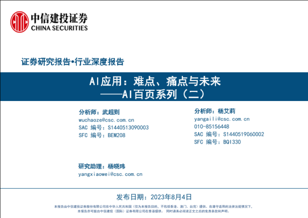 【中信建投证券】【20230804】计算机行业AI百页系列(二):AI应用,难点、痛点与未来-118页