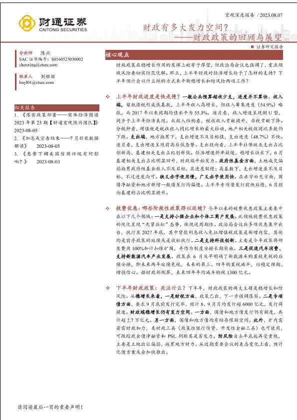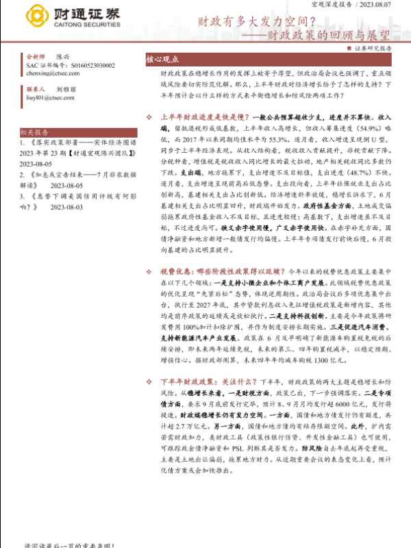 【财通证券】【20230807】财政政策的回顾与展望:财政有多大发力空间?-20页