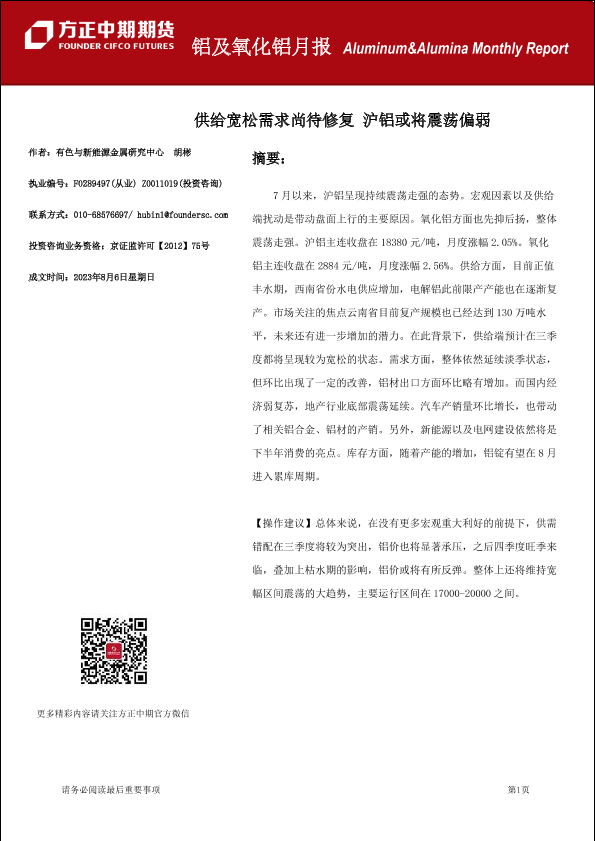 【方正中期期货】【20230806】铝及氧化铝月报-20230806-28页