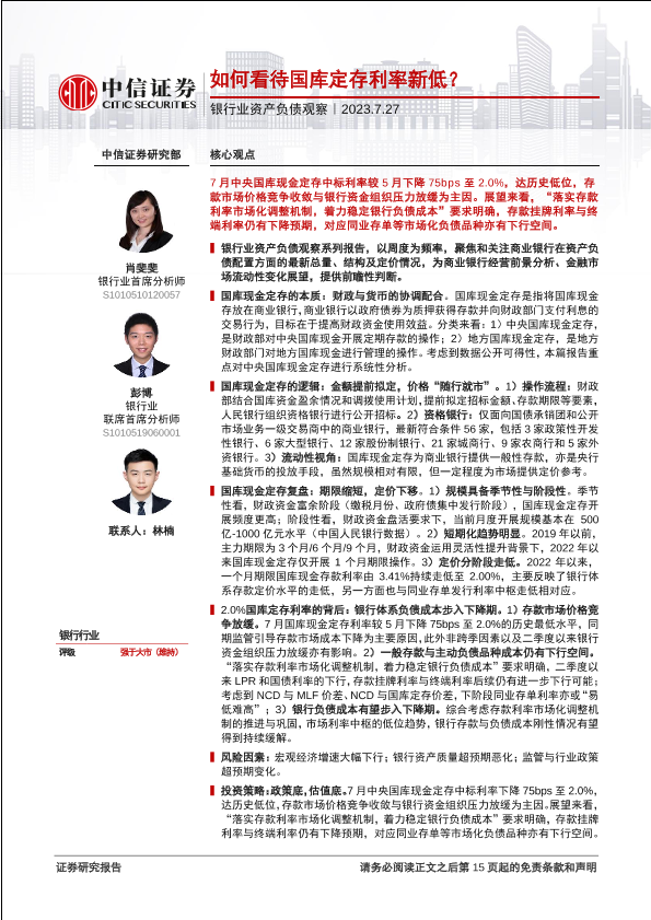 【中信证券】【20230727】银行业资产负债观察:如何看待国库定存利率新低?-16页