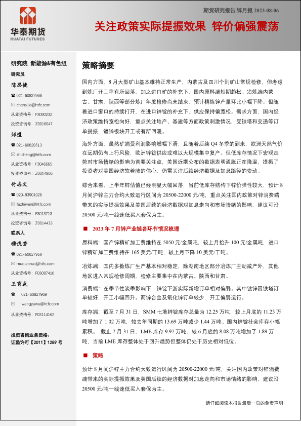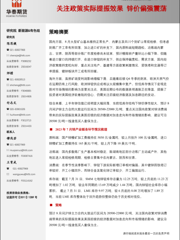 【华泰期货】【20230806】锌月报:关注政策实际提振效果,锌价偏强震荡-23页