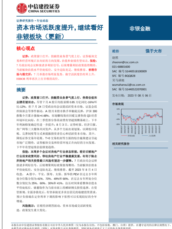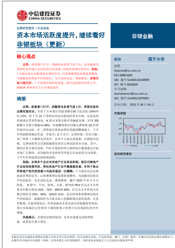 【中信建投证券】【20230806】非银金融行业:资本市场活跃度提升,继续看好非银板块(更新)-26页