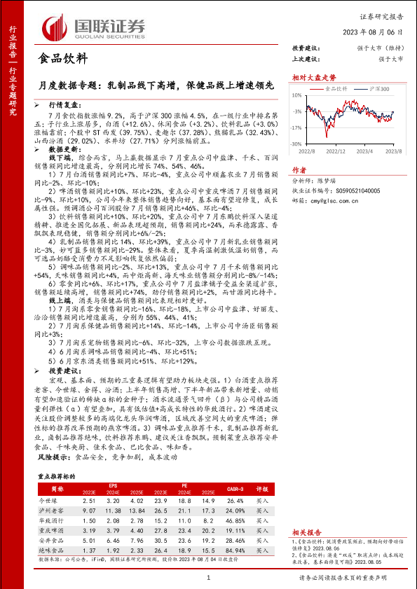【国联证券】【20230806】食品饮料行业月度数据专题:乳制品线下高增,保健品线上增速领先-21页