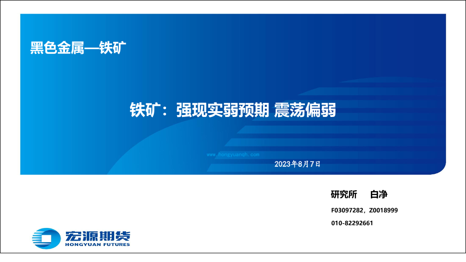 【宏源期货】【20230807】黑色金属_铁矿:强现实弱预期,震荡偏弱-28页