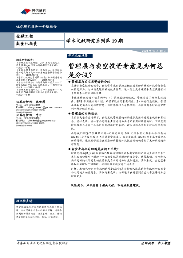 【国信证券】【20211019】学术文献研究系列第19期:管理层与卖空投资者意见为何总是分歧?-17页