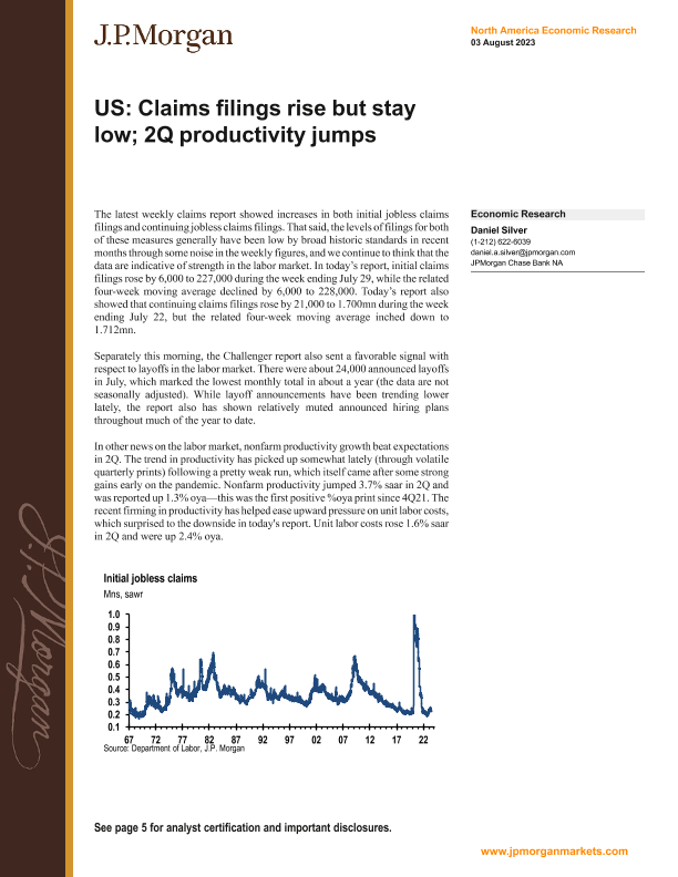 【J.P. Morgan】【20230803】US Claims filings rise but stay low; 2Q productivity jumps-8页