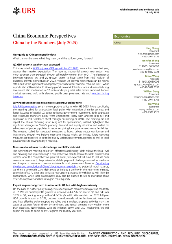 【UBS Securities Asia Limited】【20230728】China Economic Perspectives China by the Numbers (July 2023)-25页