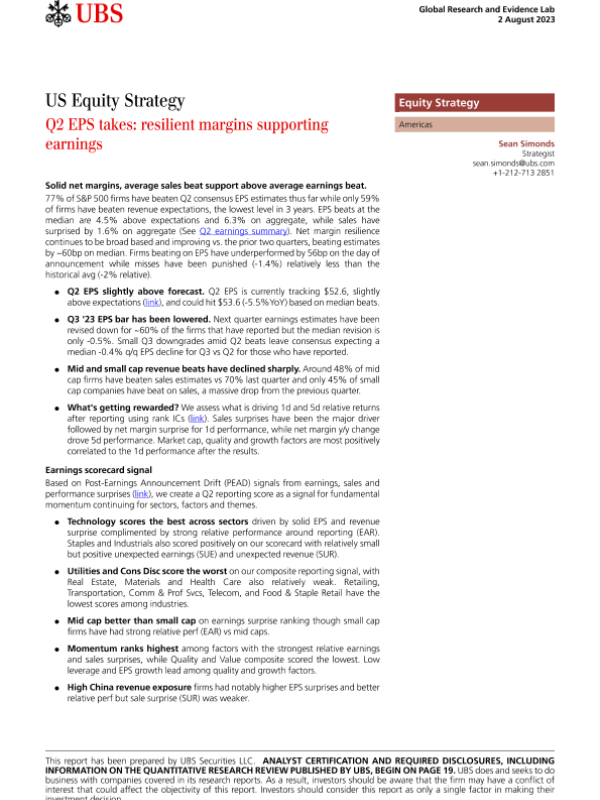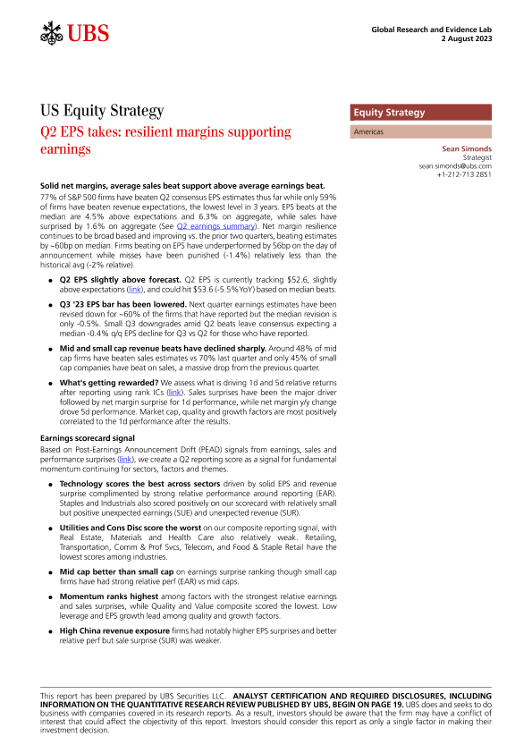 【UBS Securities LLC】【20230802】US Equity Strategy _Q2 EPS takes resilient margins supporting earnings-23页