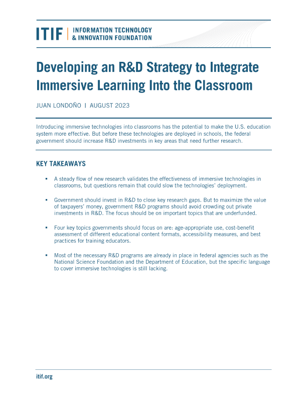 【Information Technology and Innovation Foundation (ITIF)】【202308】Developing an R&D Strategy to Integrate Immersive Learning Into the Classroom-11页