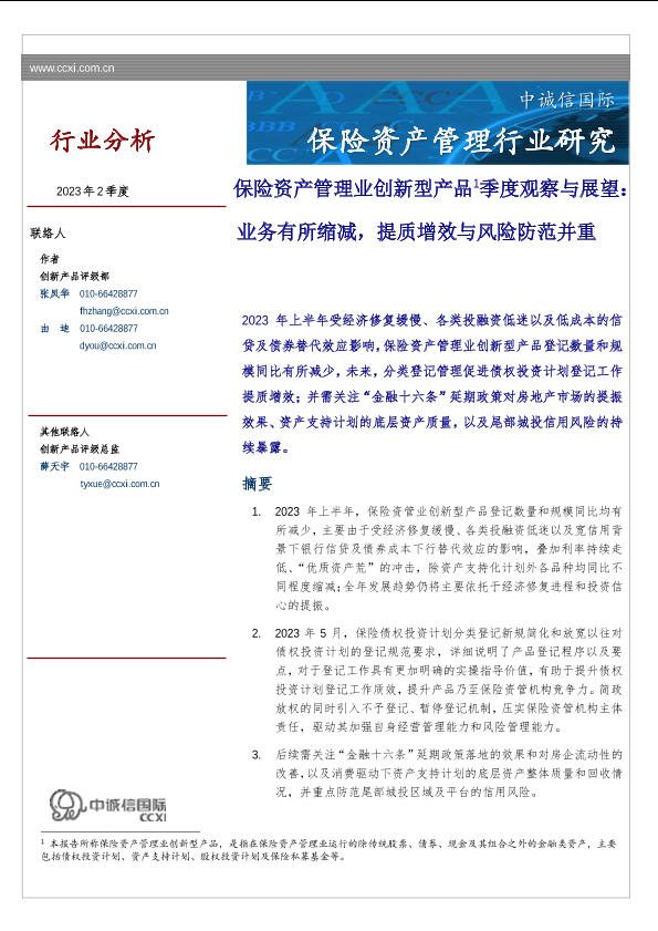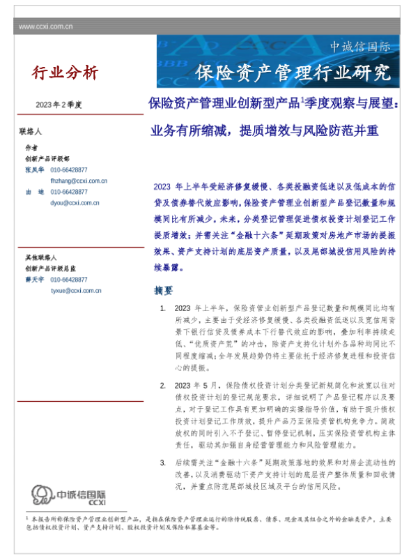 【中诚信国际】【20230630】中诚信-保险资产管理业创新型产品季度观察与展望(2023年2季度)-11页