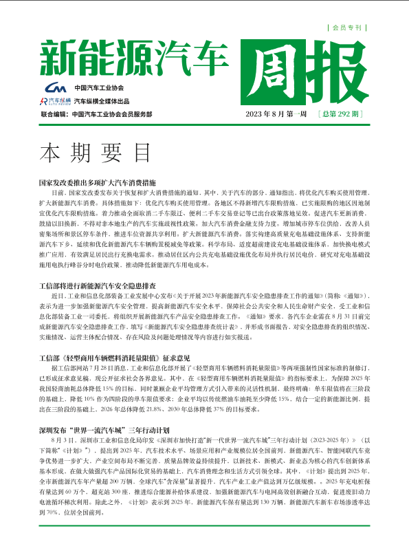【汽车纵横全媒体】【20230801】新能源汽车周报2023-8-1总292期-32页