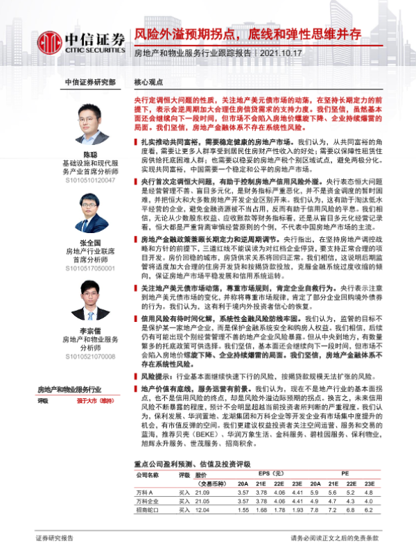 【中信证券】【20211017】房地产和物业服务行业跟踪报告:风险外溢预期拐点,底线和弹性思维并存-19页