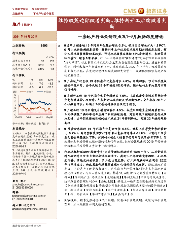 【海通证券】【20211020】房地产行业最新观点及1-9月数据深度解读:维持政策边际改善判断,维持新开工后续改善判断-17页