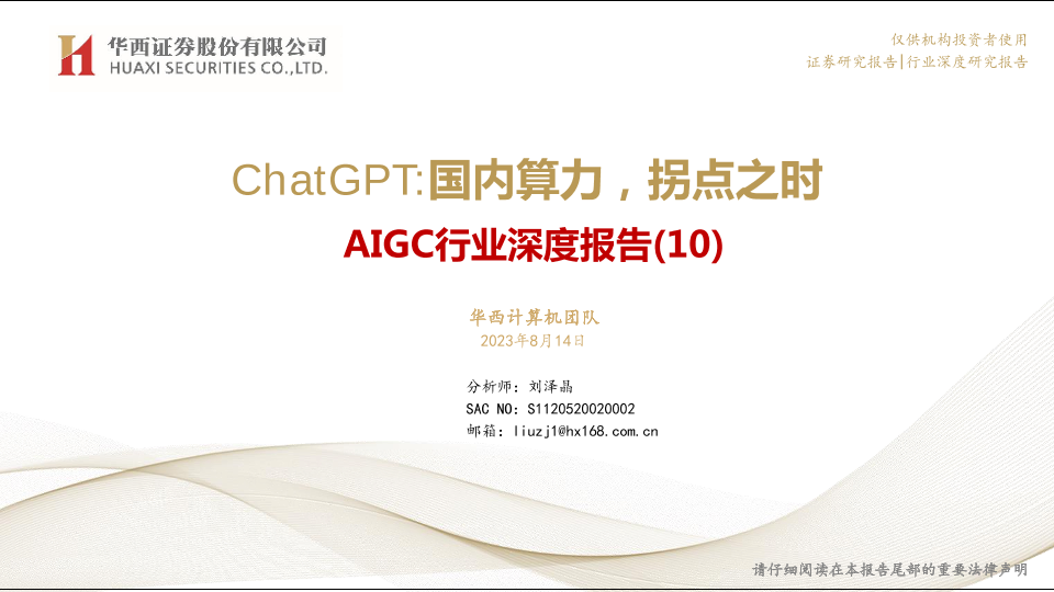 【华西证券】【20230814】AIGC行业深度报告(10):ChatGPT,国内算力,拐点之时-52页
