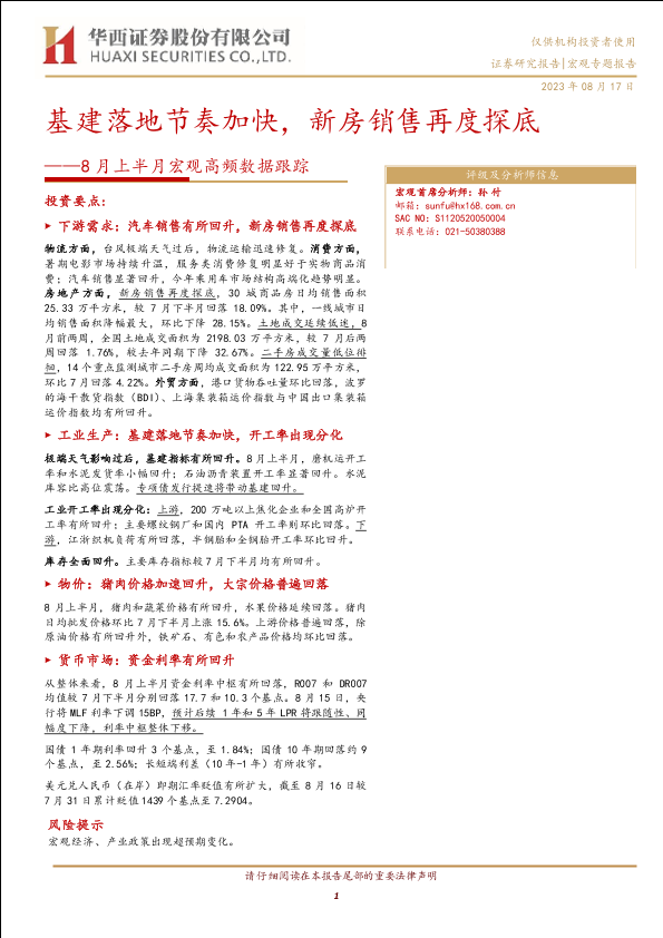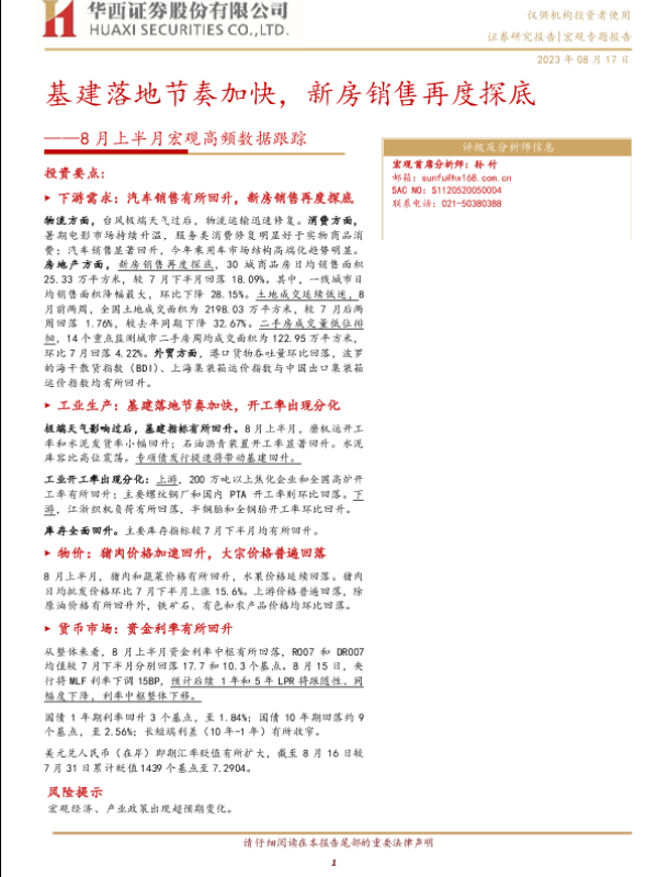 【华西证券】【20230817】8月上半月宏观高频数据跟踪:基建落地节奏加快,新房销售再度探底-18页