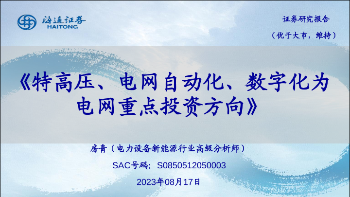 【海通证券】【20230817】特高压、电网自动化、数字化为电网重点投资方向-22页