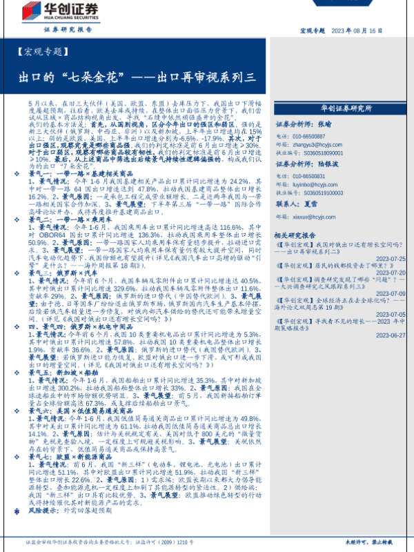 【华创证券】【20230816】出口再审视系列三:出口的“七朵金花”-17页