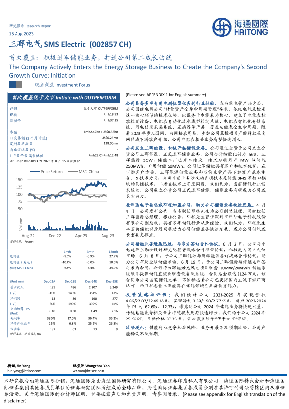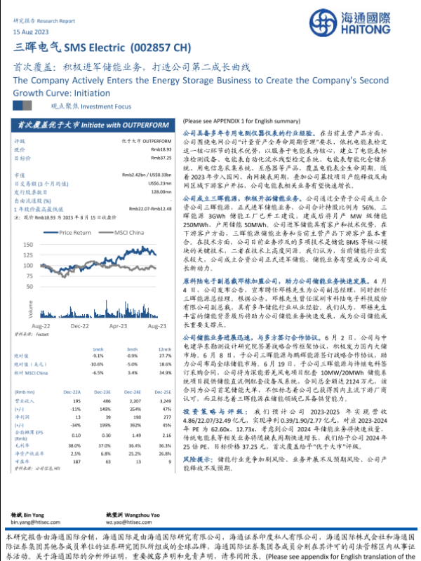 【海通国际】【20230816】三晖电气首次覆盖(002857):积极进军储能业务,打造公司第二成长曲线-24页