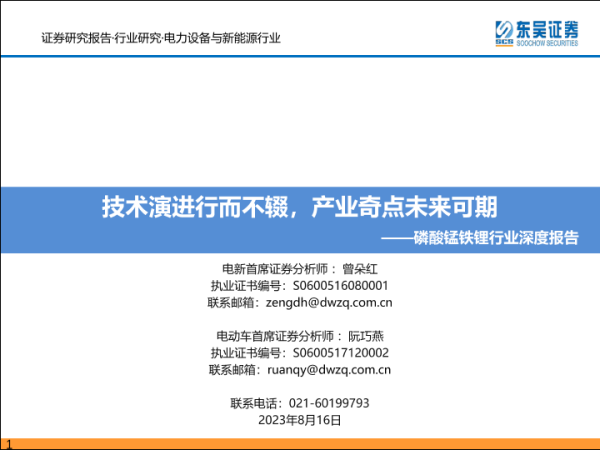 【东吴证券】【20230816】东吴证券:磷酸锰铁锂行业深度报告-技术演进行而不辍-产业奇点未来可期-47页