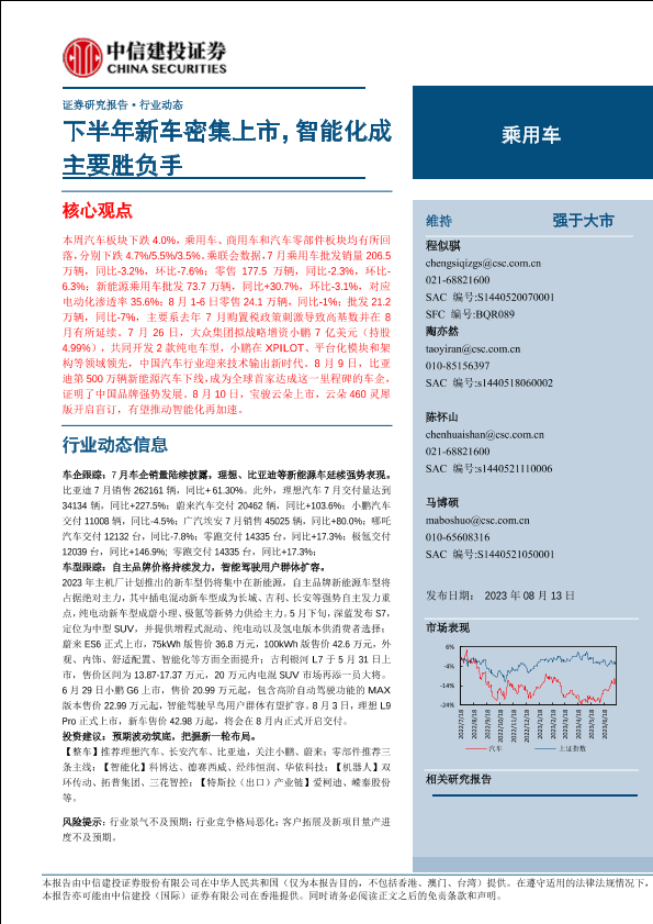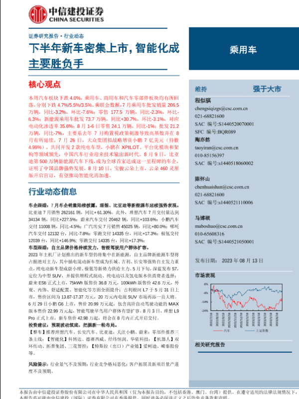 【中信建投证券】【20230813】乘用车行业:下半年新车密集上市,智能化成主要胜负手-16页