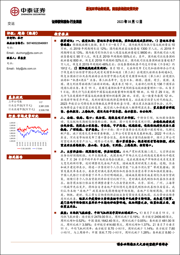 【中泰证券】【20230812】交运行业周报:暑运旺季态势延续,国际航线迎政策利好-40页