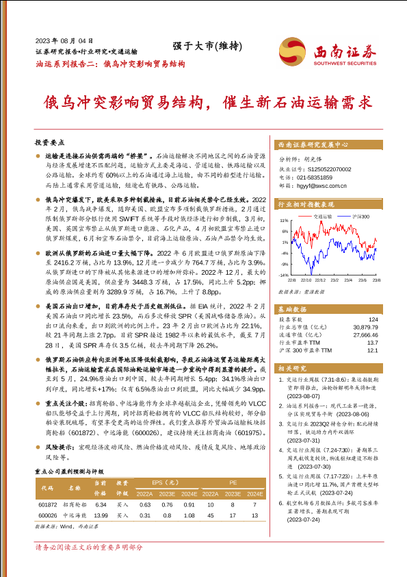 【西南证券】【20230804】交通运输行业油运系列报告二:俄乌冲突影响贸易结构,催生新石油运输需求-15页