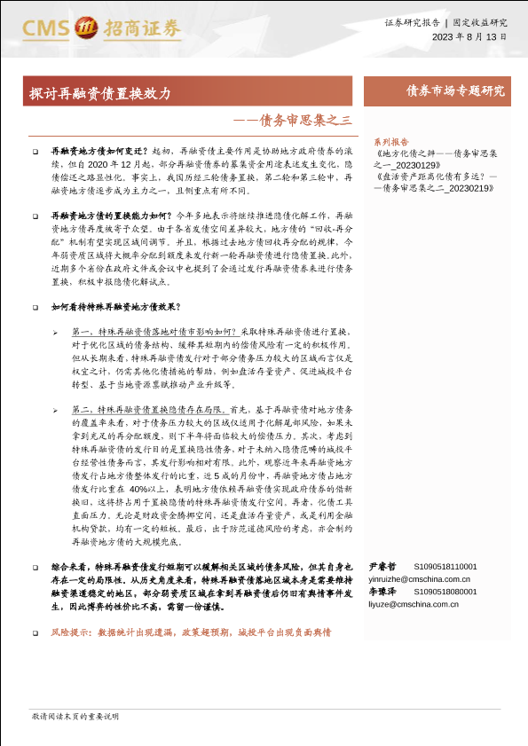 【海通证券】【20230813】债务审思集之三:探讨再融资债置换效力-25页