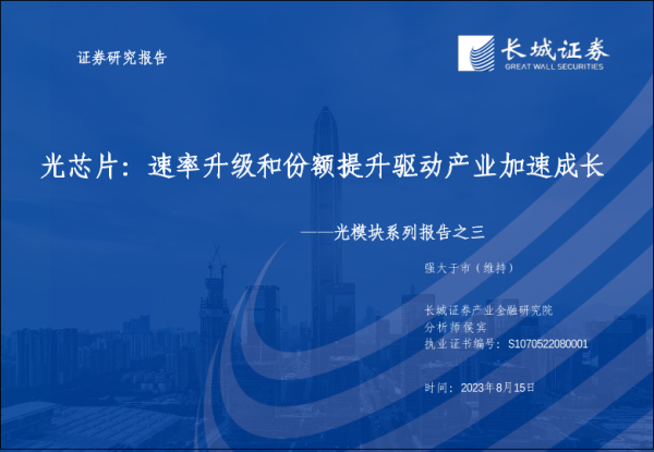 【长城证券】【20230815】光模块系列报告之三:光芯片:速率升级和份额提升驱动产业加速成长-37页