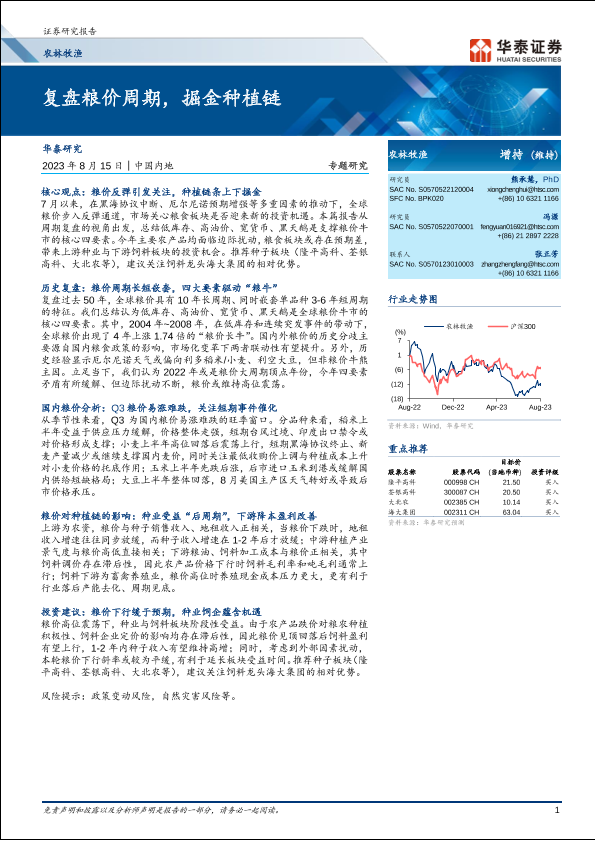 【华泰证券】【20230815】农林牧渔行业专题研究:复盘粮价周期,掘金种植链-37页