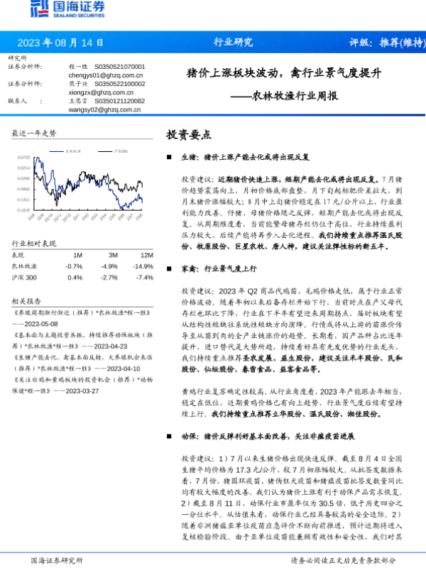 【国海证券】【20230814】农林牧渔行业周报:猪价上涨板块波动,禽行业景气度提升-20页