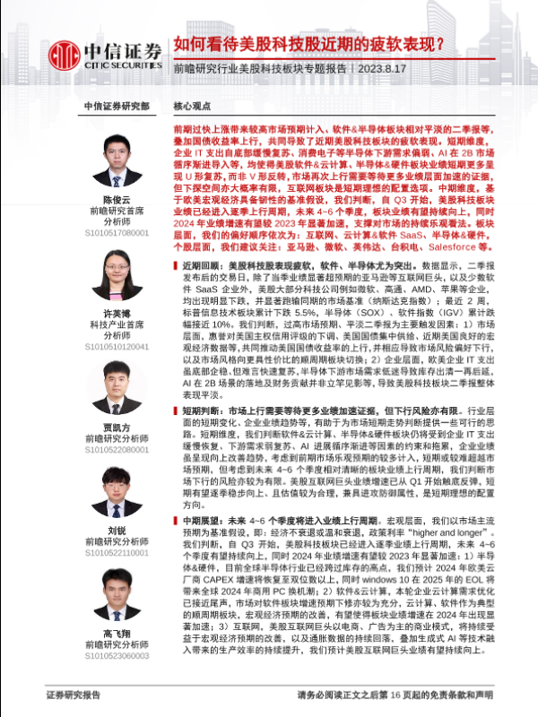 【中信证券】【20230817】如何看待美股科技股近期的疲软表现?-17页