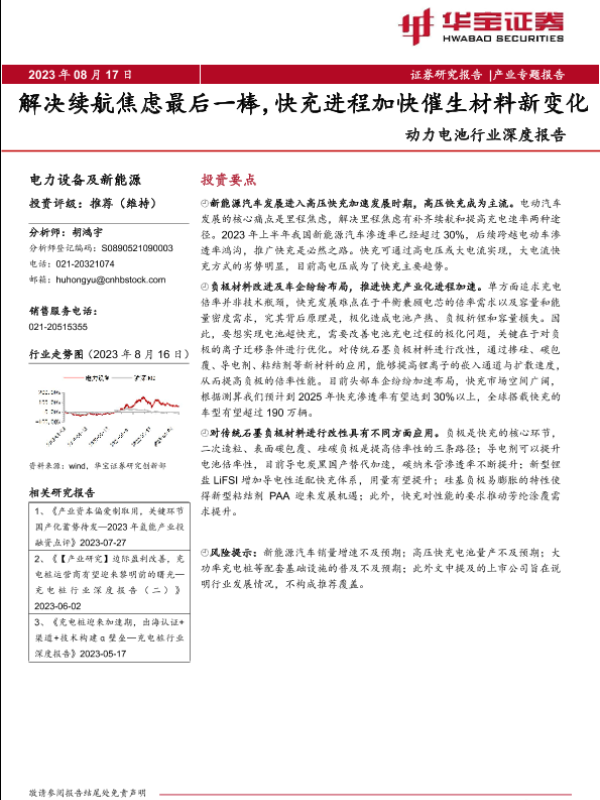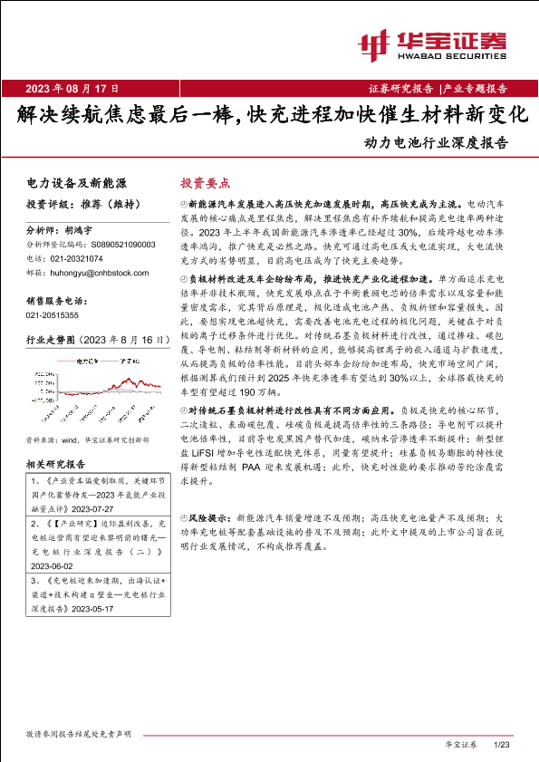 【华宝证券】【20230817】动力电池行业深度报告:解决续航焦虑最后一棒,快充进程加快催生材料新变化-23页